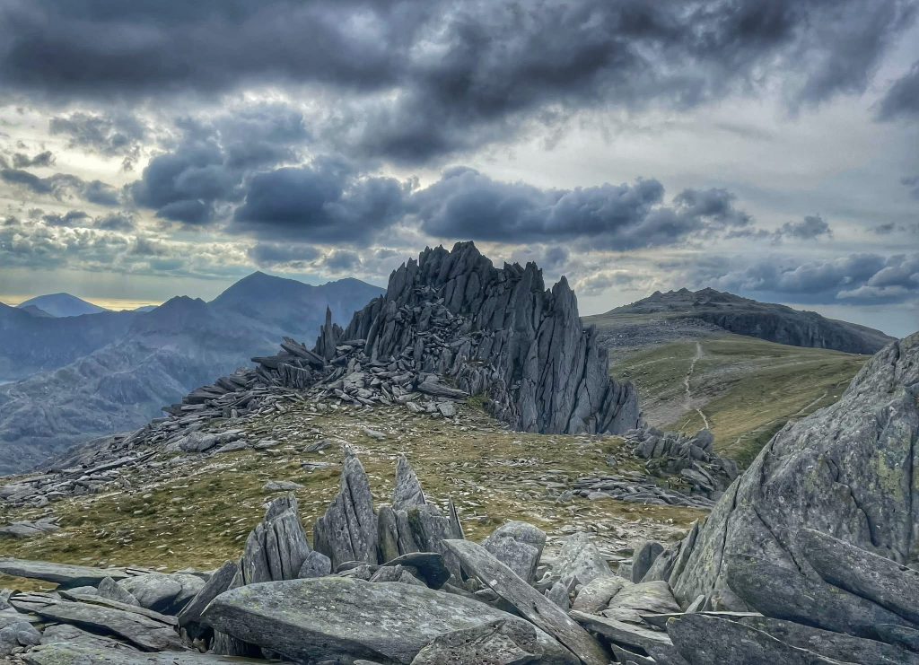 The ascent itself was largely uneventful, marked only by the quiet camaraderie of fellow runners. We leapfrogged each other up the hillside, exchanging nods or brief words of encouragement as we paused for breath or to admire the views. The path wound up through a landscape that shifted from bog and heather to increasingly rocky outcrops. As I neared the crest of the Glyders, the terrain became markedly more technical, large slabs of angled rock and loose scree demanded full concentration and nimble footwork, especially now that the wind had begun to pick up. Still, this section remains one of my favourites: the landscape here is stark and dramatic, with jagged rocks jutting skywards, and the panoramic views stretching out in every direction, peaks and valleys fading into the misty distance, making it feel as though I’d landed on another planet entirely.
