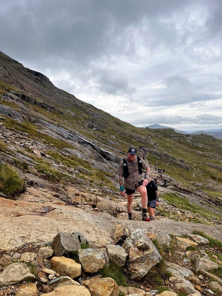 Eventually, the path levelled out as I neared the checkpoint. Volunteers greeted us cheerfully, and the checkpoint bustled with runners grabbing supplies and refuelling. I wasted no time in filling my bottles, taking the added precaution of topping up a third bottle in anticipation of the big climb to come, the much-anticipated ascent of Yr Wyddfa (Snowdon). I made sure to grab a handful of fruit, a bag of crisps, and a sandwich, knowing that nutrition would be crucial for what lay ahead. Spirits were high as I left CP2, the sense of camaraderie among the runners palpable, and I pushed on with growing excitement towards the next, and perhaps most iconic, challenge of the race.