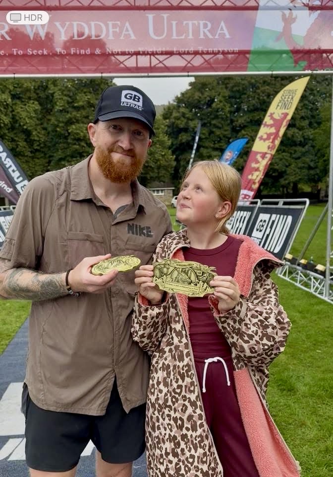 The approach to the boardwalk, which signalled the final stretch, was surreal. The wooden slats were slick underfoot, but I barely slowed, crossing the bridge and into the village. The distant sounds of applause grew louder as I entered Betws-y-Coed, and the sight of locals and tourists alike, sheltering under umbrellas yet still clapping and cheering, made the moment all the more special. Their encouragement carried me through the village. I ran through with a silly big smile on my face. As I ran onto the village green I spotted my family, cheering me on, I crossed the finish line, overwhelmed by emotion. I had done it.