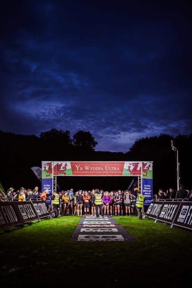 On arrival at the race HQ, the buzz of pre-race excitement was already building. I collected my GPS tracker from the desk and secured it to my pack. Next, I handed in my two drop bags at the designated area, this was my first time relying on drop bags rather than a crew, so I’d packed them carefully with extra socks, gels, food, spare layers, spare trainers, a fresh headtorch battery, and even a bottle of Lucozade for a morale boost later in the race. With everything sorted, I joined the other runners at the start line, feeling a mix of nerves and anticipation as the day’s adventure lay ahead.