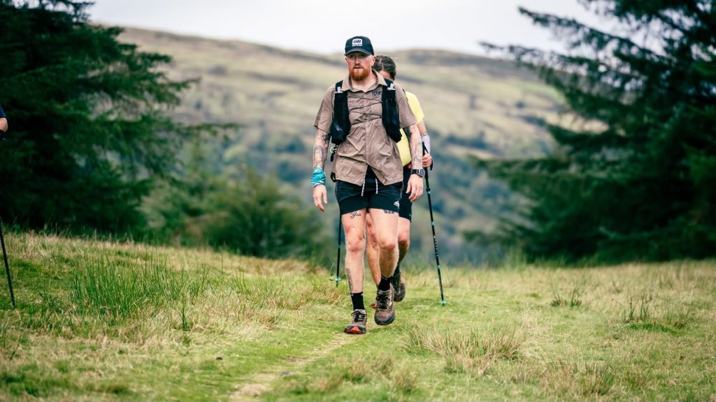 The forest track that marked the last climb wound steadily upwards, its surface slick with puddles. I settled into a determined power hike, planting each pole firmly and driving myself forward with the thought of finally finishing this race. Despite the fatigue in my legs and the stinging rawness of my feet, now well past the point of caring about the damp, I found my mind wandering to thoughts of celebration, visualising a hot meal, a well-earned drink, and the sweet relief of sitting down with my family.