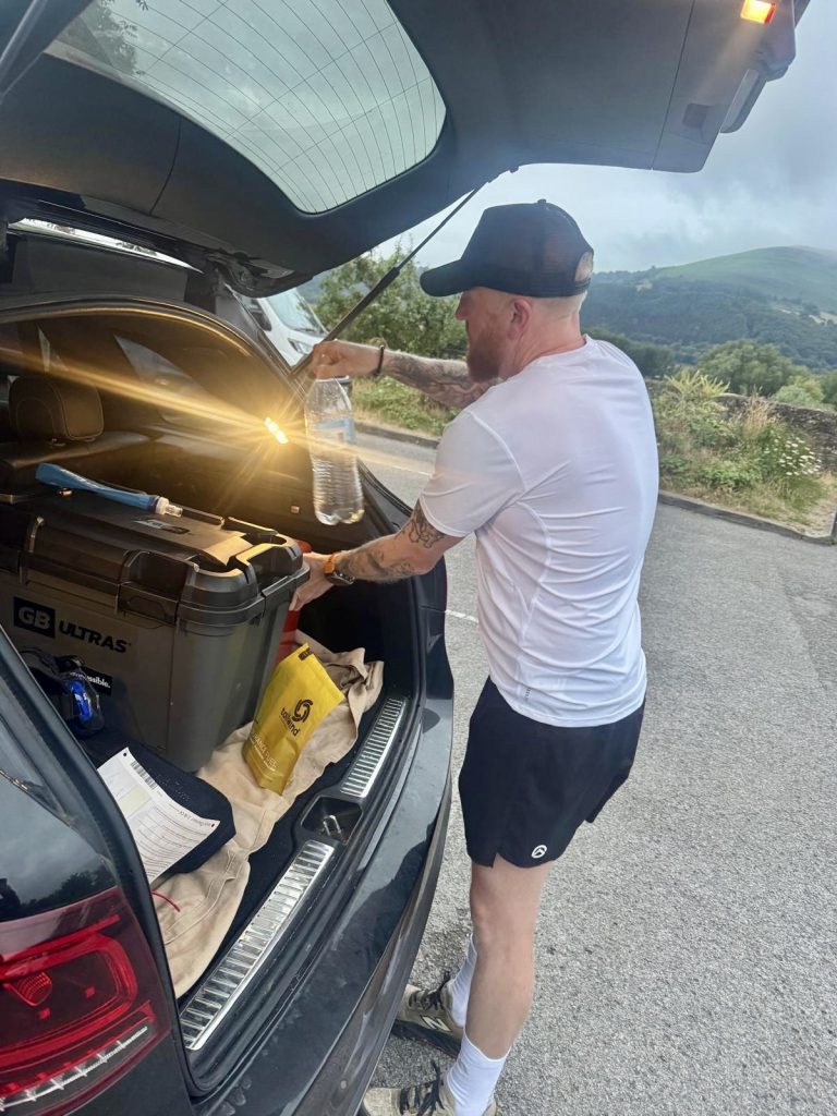 I arrived at CP6 and met my crew. Pot noodle was on the menu which went down nicely, followed by another coffee and some snacks and a milkshake. It was time to get ready for the night shift so I changed my clothes, brushed my teeth, but on my calf sleeves and an extra upper layer. It was dark now, so the head lamp was on, and I headed off into the pitch black.