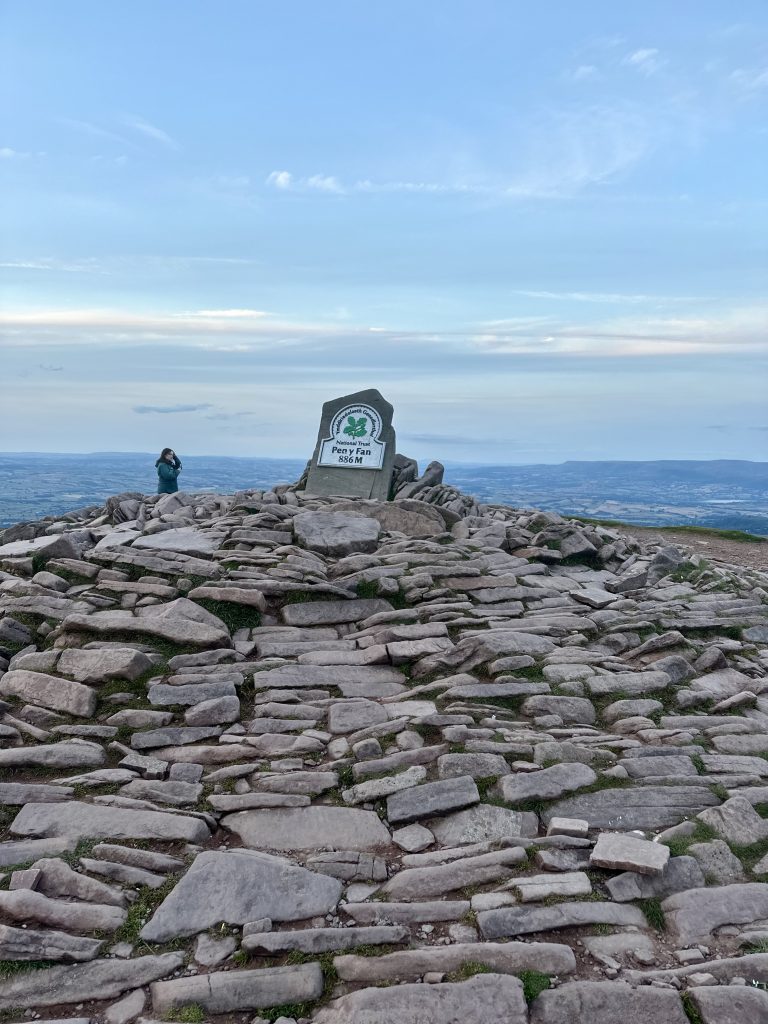 I pushed along the ridge to Cribyn, then made the steep ascent to Pen y Fan (886m), the highest peak in southern Britain. The path was well-trodden but steep and exposed. I touched the trig, grabbed a quick picture and took in the views as the sun was now setting. I then started the descent into the CP in the Car Park which was very runnable, apart from the little up and down before the main descent which was stone steps and a gravel path.