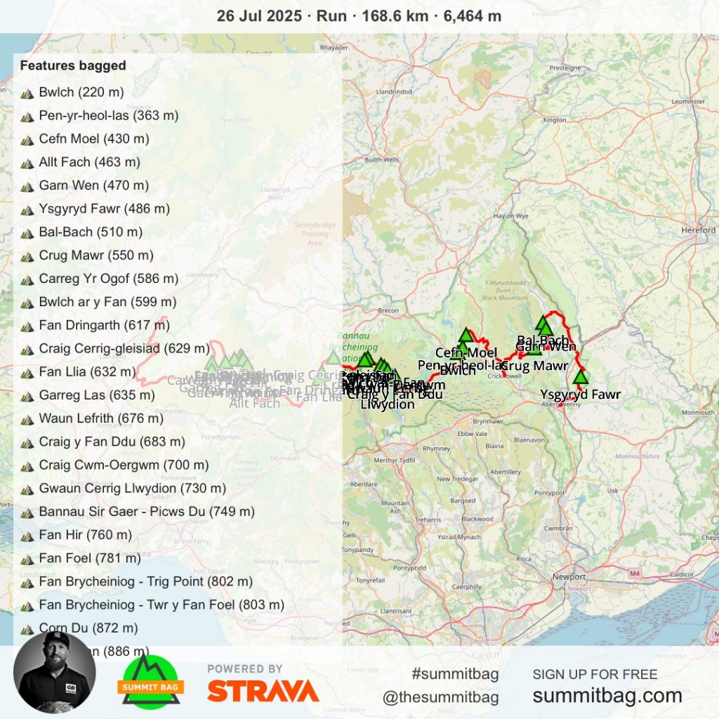 That’s race 3 out of 4 races completed for the GB Ultras 2025 100-mile Grand Slam series. The Race Across Bannau Brycheiniog, the Brecon Beacons National Park! The Beacons Way 100 mile ultra is just over 100 miles starting from the ruins of Abergavenny Castle and following the Beacons Way National Trail all the way West of the country to Llangadog. A stunning race, taking on the highest mountains in South Wales including Pen-y-Fan (886m) and the Carmarthen Fans with just under 6,500m of total elevation gain across the race.