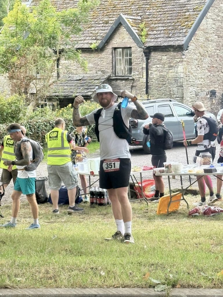 I ran the last few quiet lanes into the village and spotted the finish line. I ran on to the field and crossed it, thankful this one was done. My quads were in bits from the descending and my heel was tender, but I’d completed this tough race and that was the goal. I collected my gold buckle and got the obligatory portrait finishers photo from Dan. Done! As always, GB Ultras put on another well organised and quality event. A big thank you to the team and volunteers who made it a safe and memorable event for every single runner. And a big thank you to the media team, the medic team and to the race directors, Laura, Ian and Wayne.